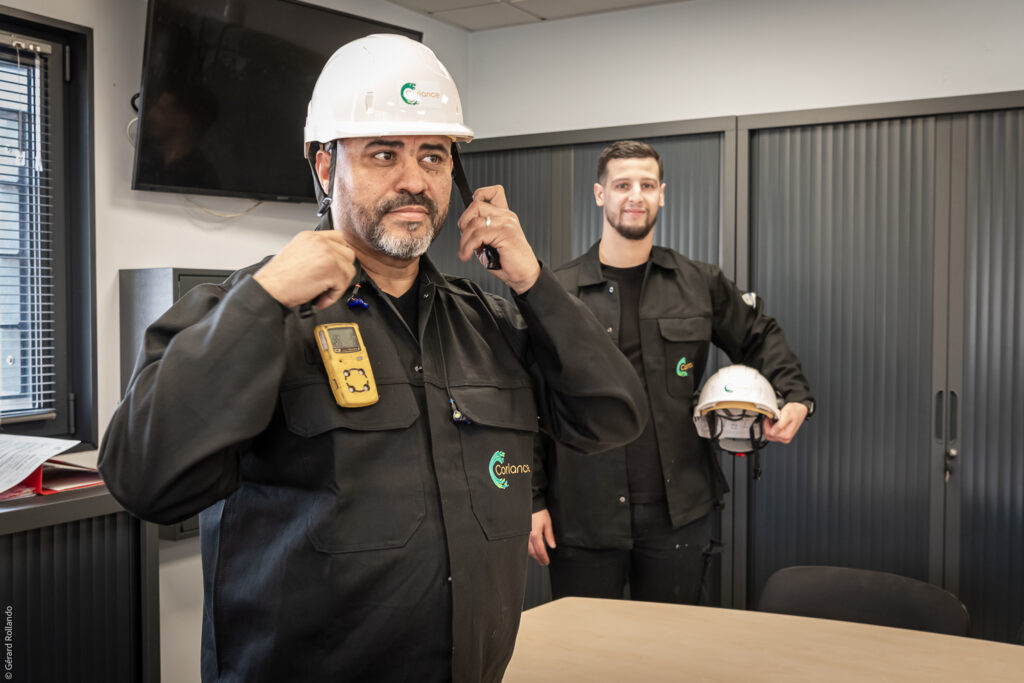 « Afin d’accompagner le remplacement des anciens casques et des casquettes anti‑heurt par de nouveaux casques de sécurité, nous avons mené des causeries nationales afin de mobiliser les équipes autour de ce changement et de les sensibiliser en même temps au recyclage des anciens équipements », explique Emmanuelle, référente prévention sécurité chez Coriance.