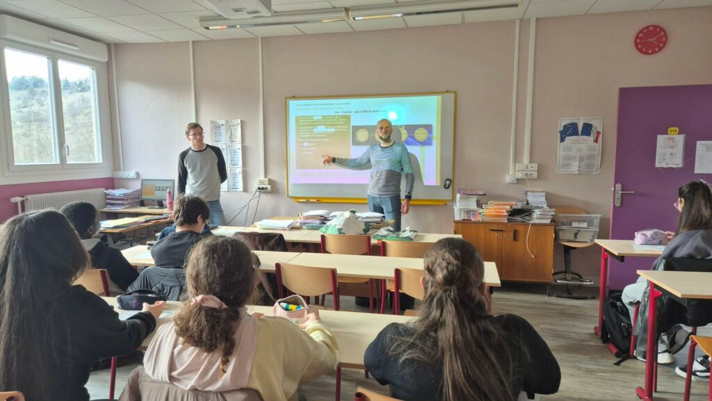 Pendant une heure, Thibaut, chargé d’affaires, et Damien, chef de projet travaux, ont présenté aux élèves le fonctionnement d’un réseau de chaleur urbain (RCU). Ils ont expliqué comment ce système complexe permet d’acheminer une chaleur durable jusqu’aux bâtiments du territoire.