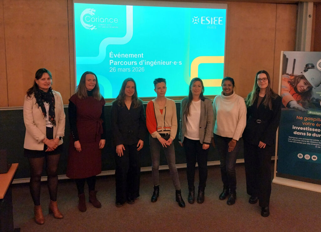 Jeudi 26 mars 2026, dans le cadre de l’événement « Parcours d’ingénieur·e·s », co‑organisé avec l’ESIEE Paris — école d’ingénieurs partenaire du Groupe depuis 2024 — quatre ingénieures de Coriance ont partagé leurs parcours et leurs expériences avec une quarantaine d’étudiants ingénieurs de 4ᵉ année, issus notamment des filières énergies, génie industriel et informatique.